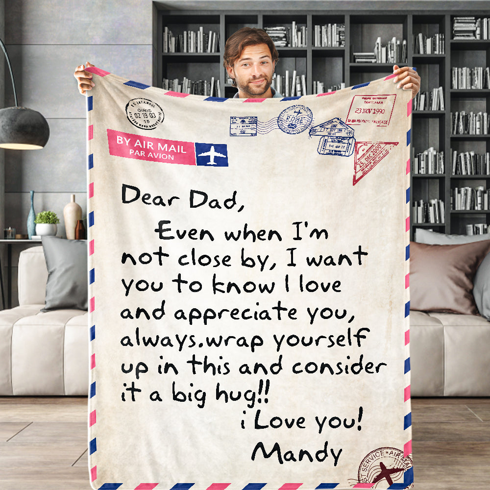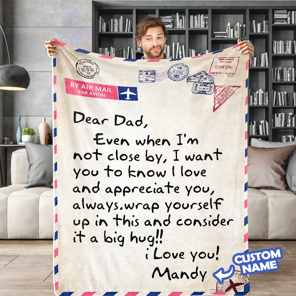 Father's Day Gifts Custom Blanket Letter to My Dad Personalized Name Blanket Air Mail Letter Blanket