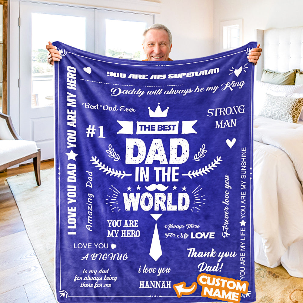 Father's Day Gifts Custom Blanket Best Dad in The World Personalized Name Blanket