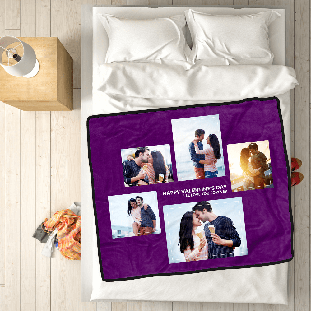 Custom Perfect Love Fleece Photo Blanket with 5 Photos