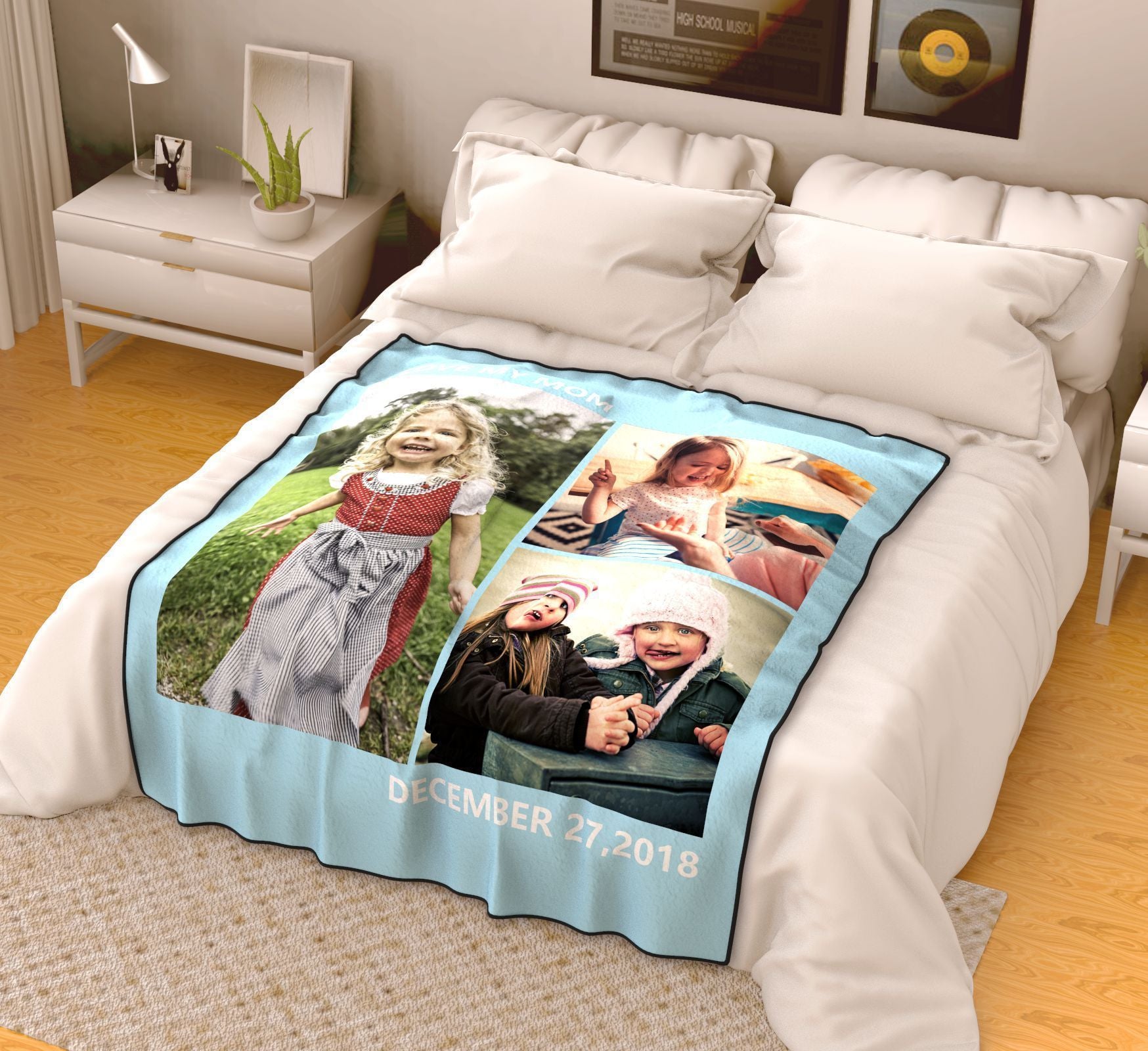 Personalized Kids Fleece Photo Blanket with 6 Photos