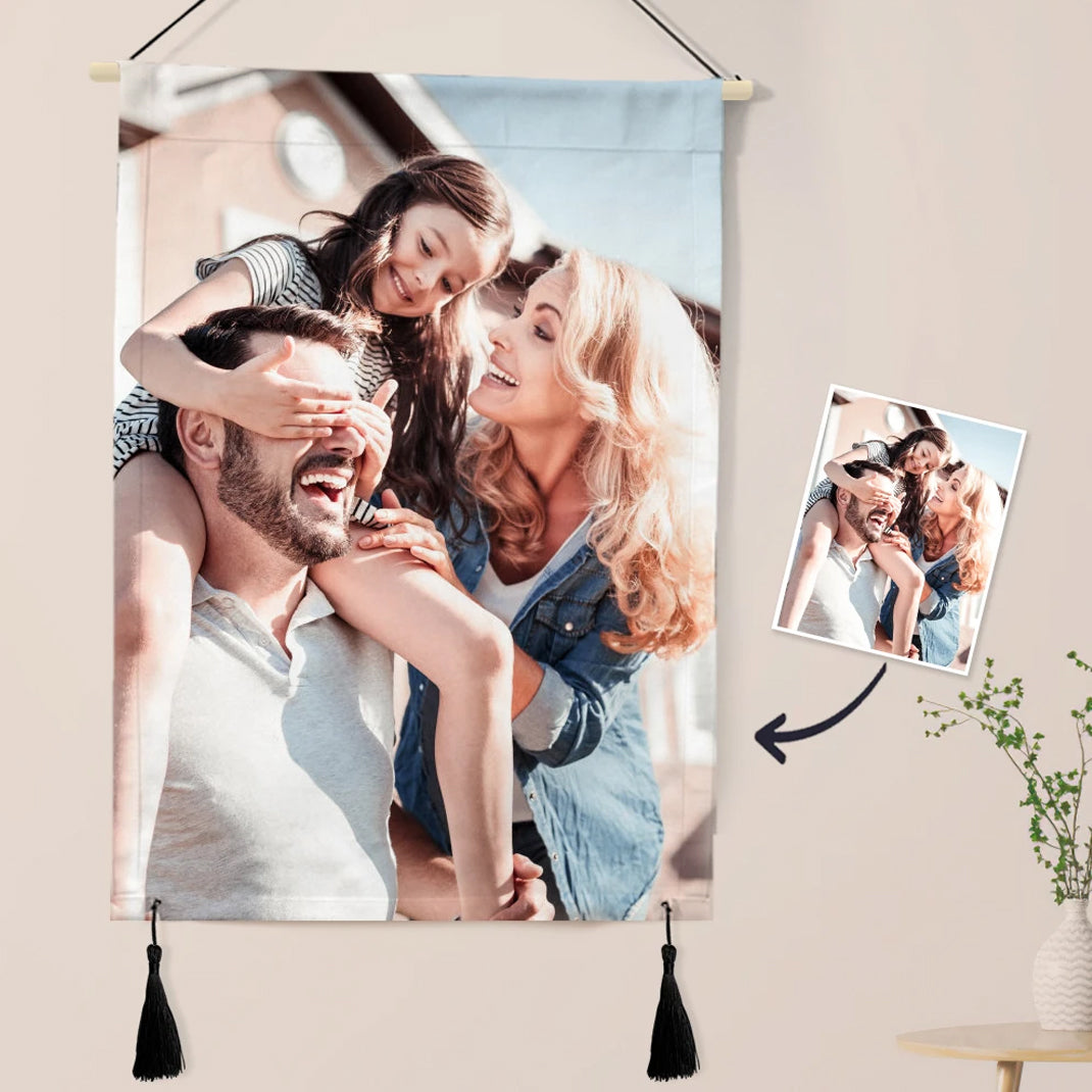 Custom Photo Tapestry -Family Wall Decor Fabric Painting Hanger Frame Poster