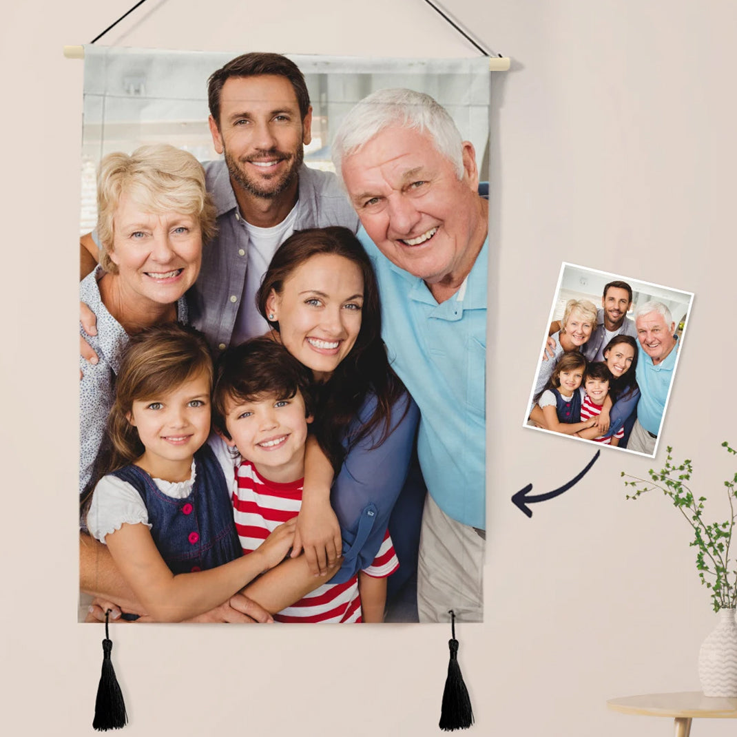 Custom Photo Tapestry - Wall Decor Hanging Fabric Painting Hanger Frame Poster Mother's Day Gift