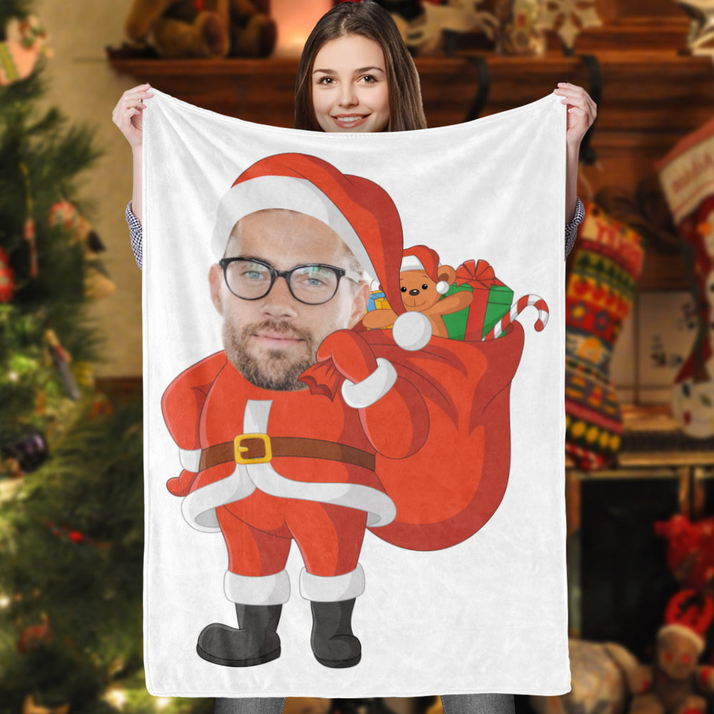 Unique Christmas Blanket Gifts Photo Blanket Face Blanket Custom Blanket Personalized Santa Claus in A Red Bag with Gifts