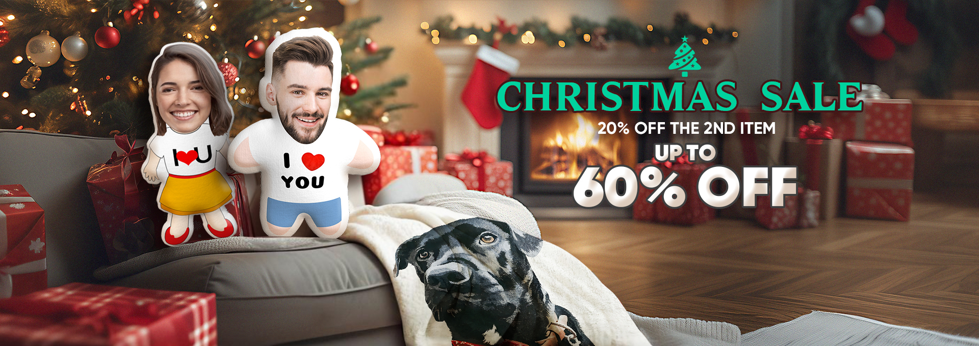 20% off 2nd#f00Custom Face Photo Pillow Feliz Navidog MiniMe Pillow Christmas Gift -