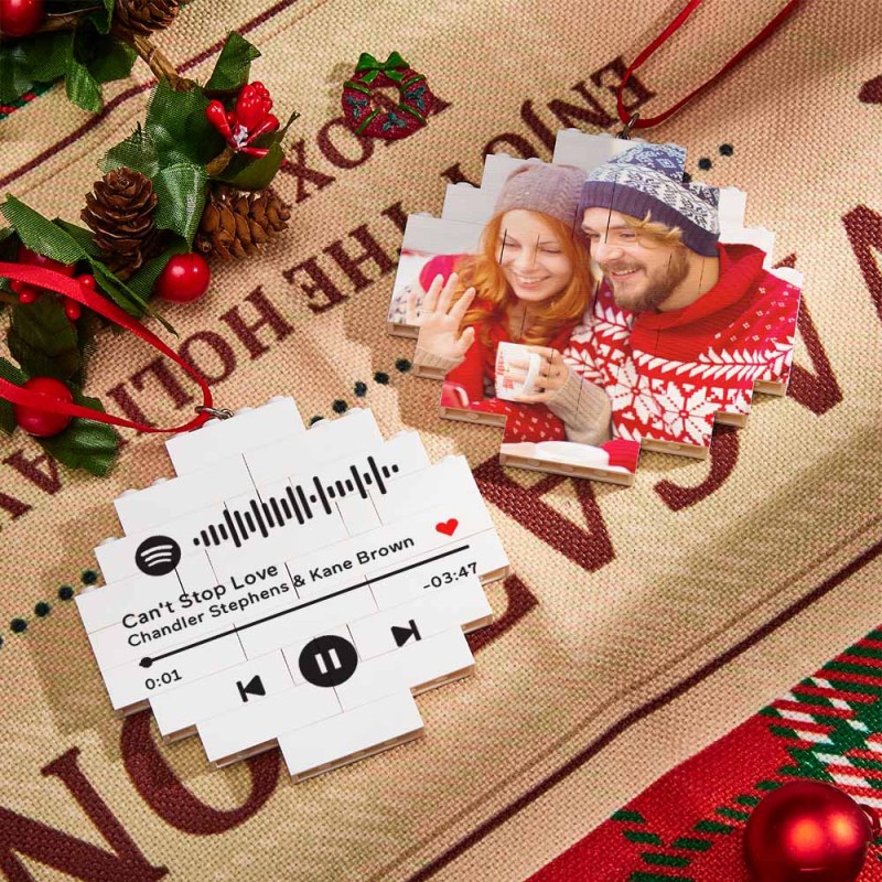 Christmas Ornament Custom Music Code Round Photo Block Personalized Building Brick