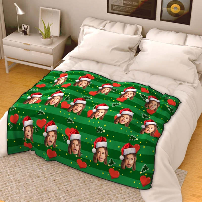 Christmas Heart Personalized Fleece Photo Blanket - Green