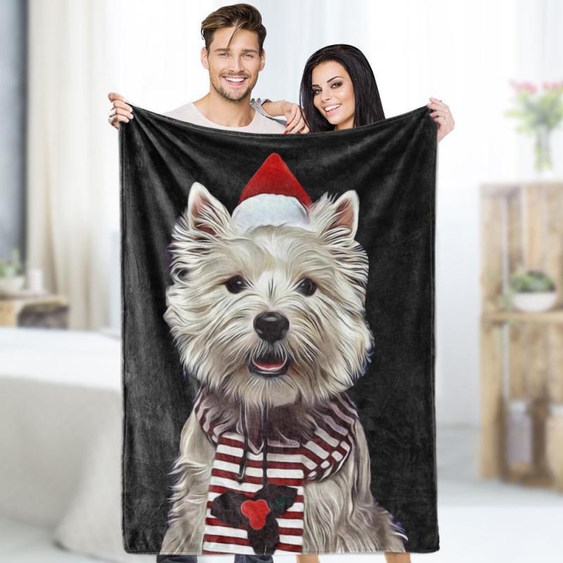 Custom Dog Blankets Personalized Pet Photo Blankets Painted Art Portrait Fleece Throw Blanket Festival Gift For Him