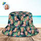 Custom Bucket Hat Personalized Logo All Over Print Tropical Flower Print Hawaiian Fisherman Hat - Flamingo