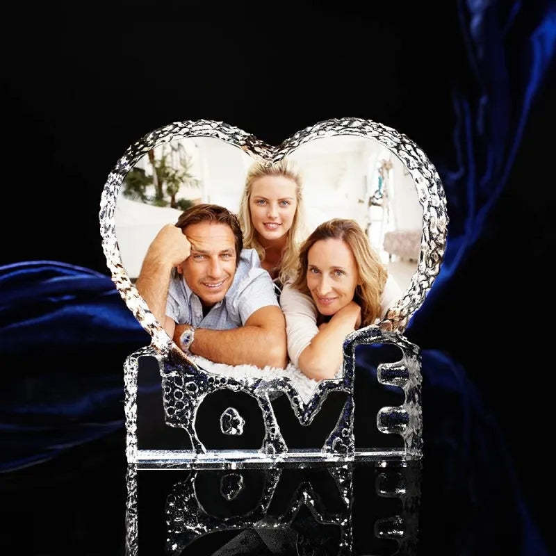 Custom Crystal Photo Frame Heart-Shaped With Love Keepsake Gift 100mm