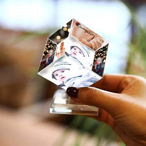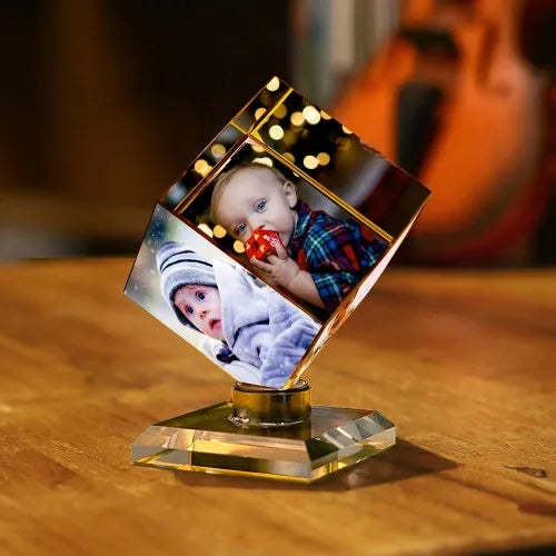 Custom Crystal Photo Frame Rubic's Cube Keepsake Gift 50mm For Baby
