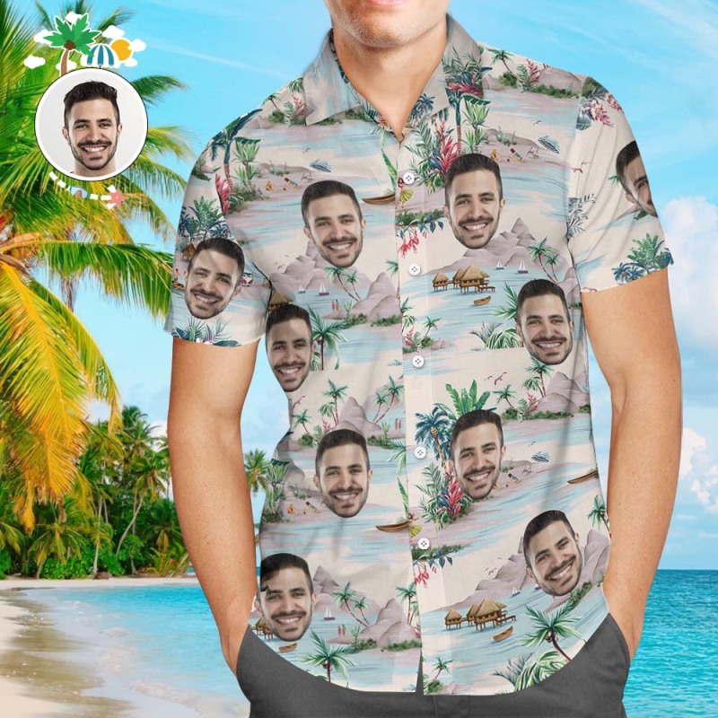 Custom Face Hawaiian Shirt All Over Print With Landscape Pattern