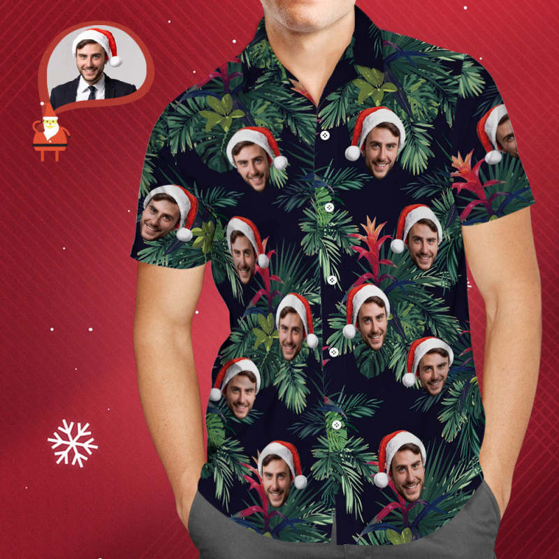 Custom Face Hawaiian Shirt All Over Print Leaves