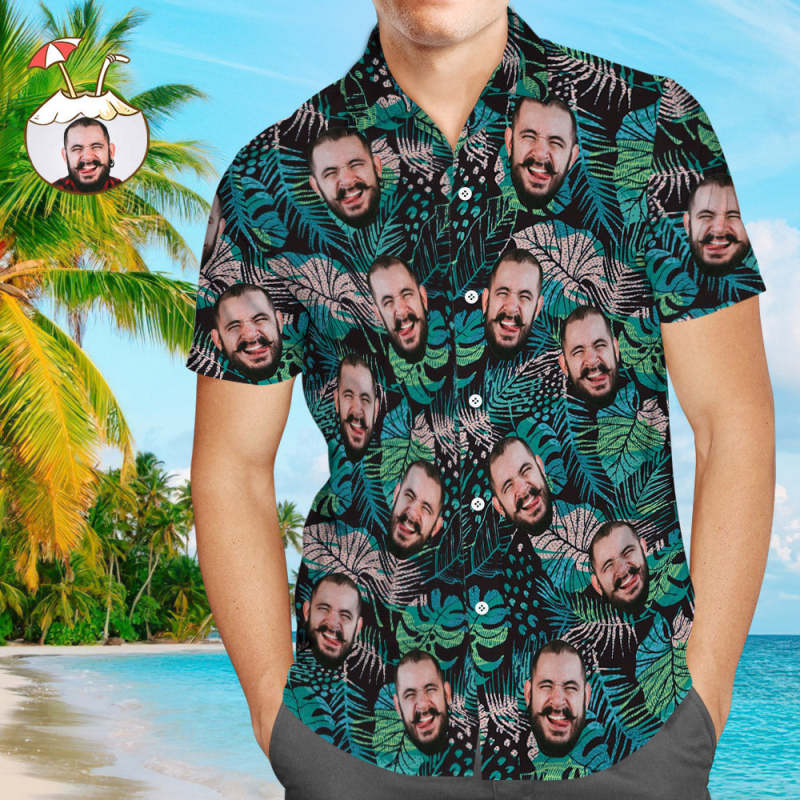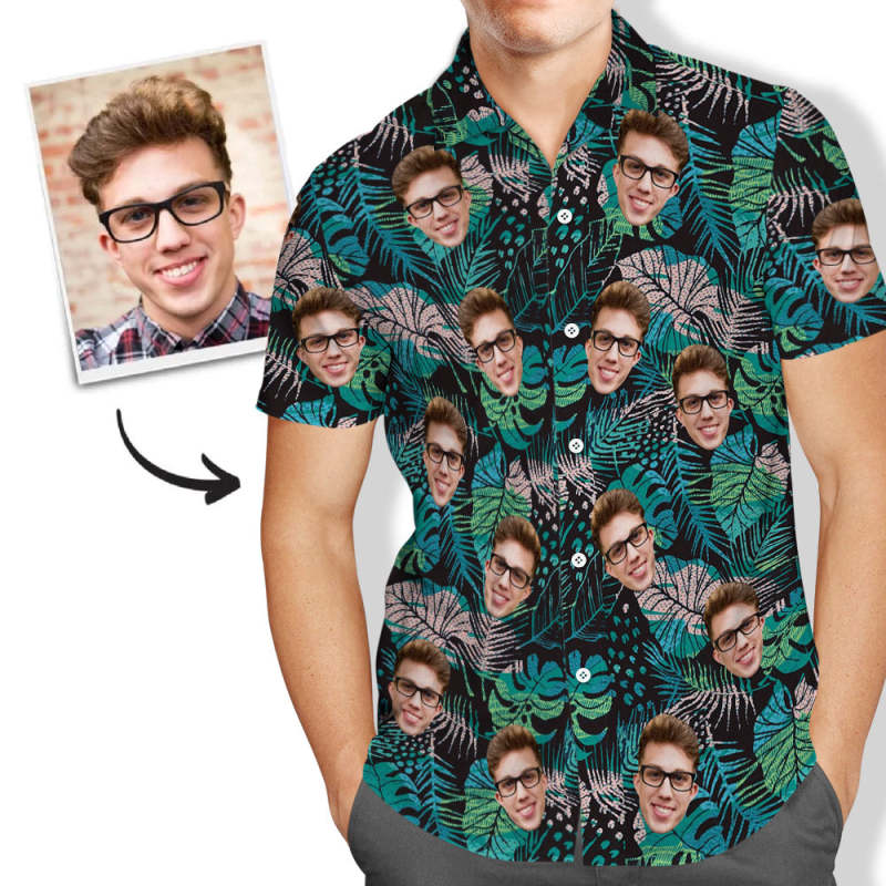 Custom Photo Hawaiian Shirt Men's All Over Print Large Leaves Short Sleeve Shirt Leaves Custom Dog Button up Shirts