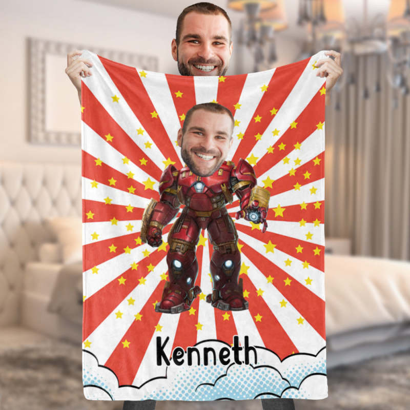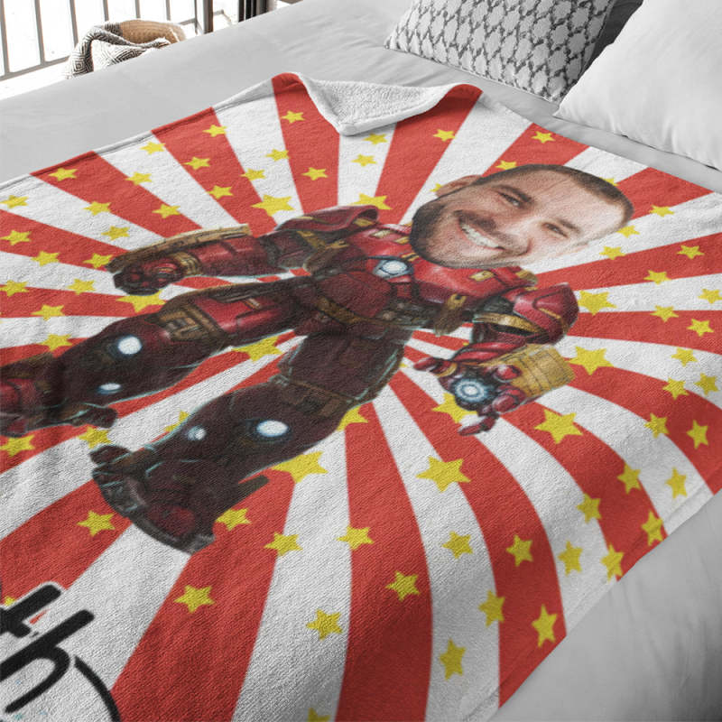 Custom Face Photo Blanket Personalized Photo and Text Blanket Iron Man Minime Blanket A Unique Cool Gift For Him