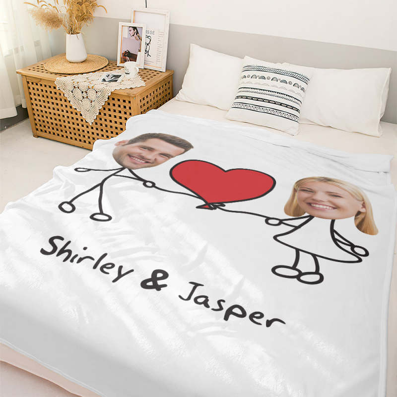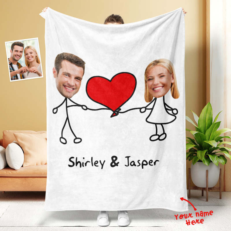 Custom Matchmaker Face Blanket Extra Large Love Heart Personalized Couple Photo and Text Blanket Valentine's Day Gift