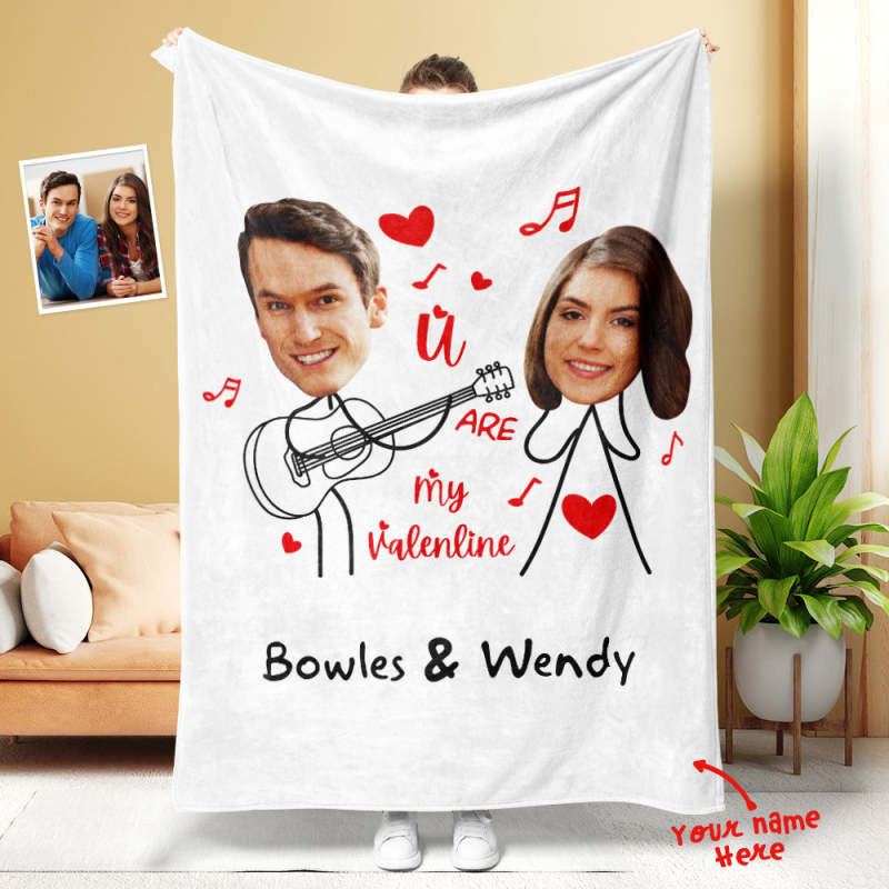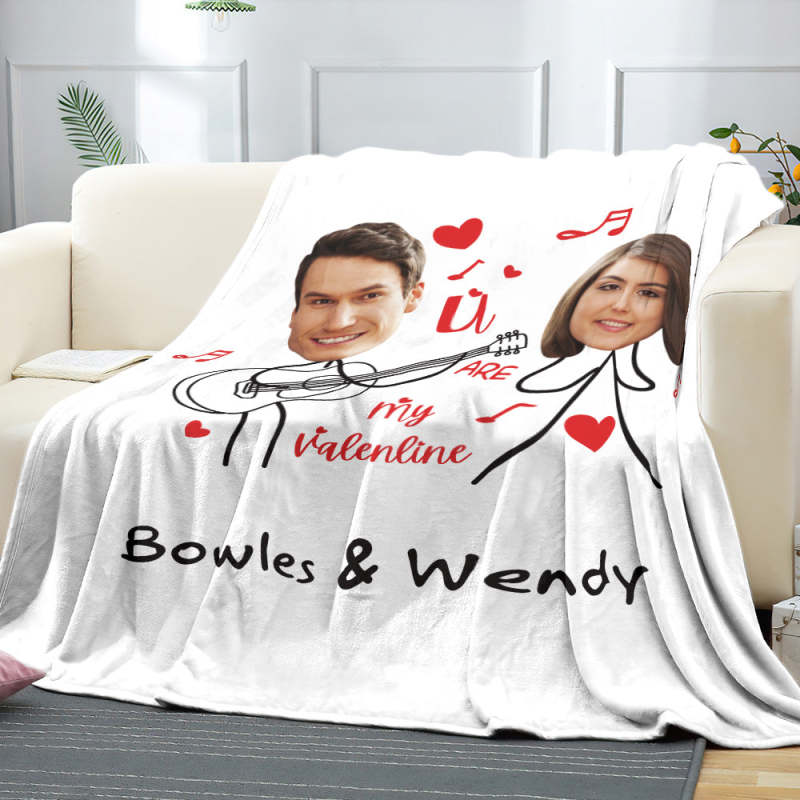 Custom Matchmaker Face Blanket Guitar Love Song Personalized Couple Photo and Text Blanket Valentine's Day Gift