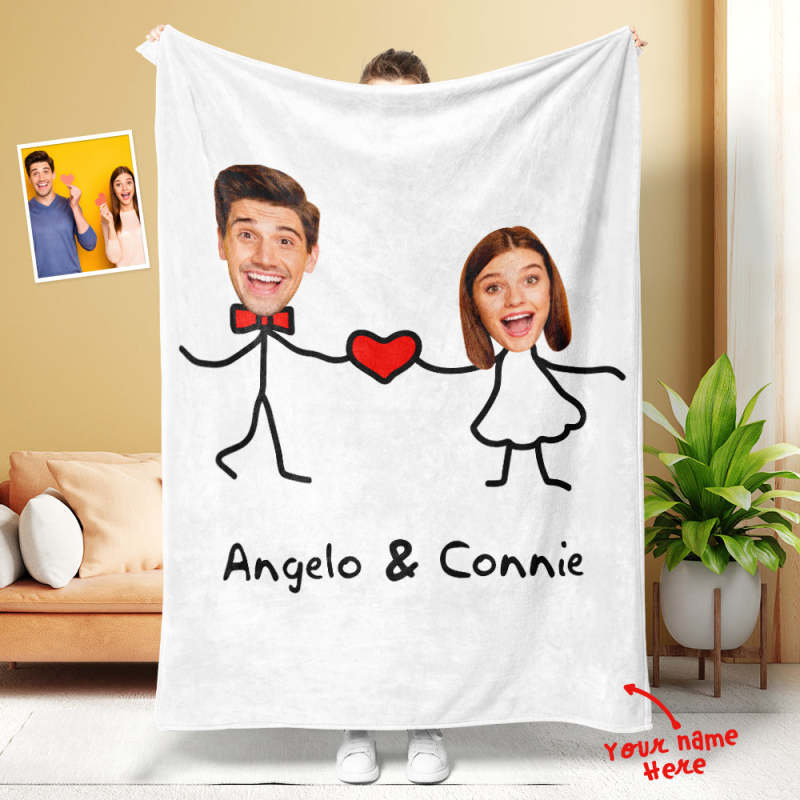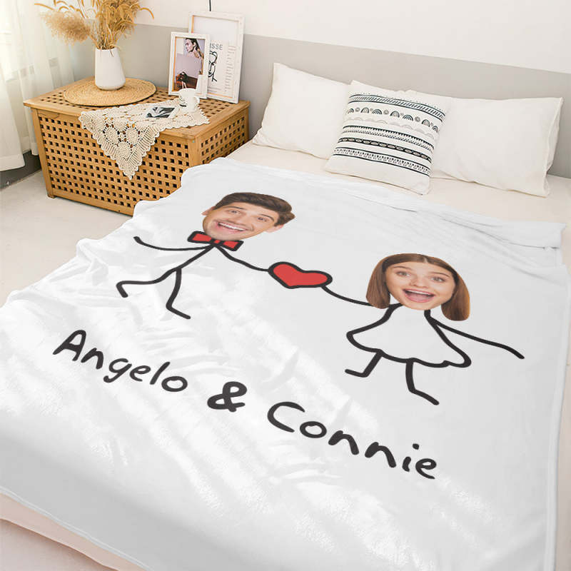 Custom Matchmaker Face Blanket Holding Hands with Love Personalized Couple Photo and Text Blanket Valentine's Day Gift