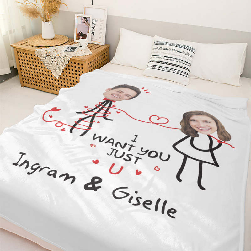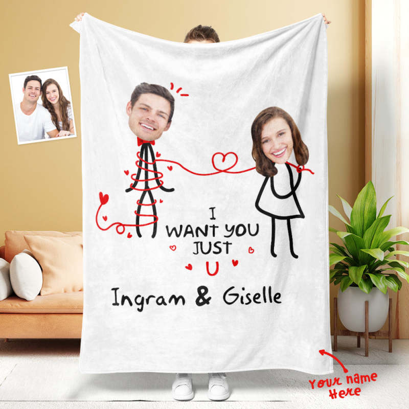 Custom Matchmaker Face Blanket I Just Want U Personalized Couple Photo Blanket Valentine's Day Gift