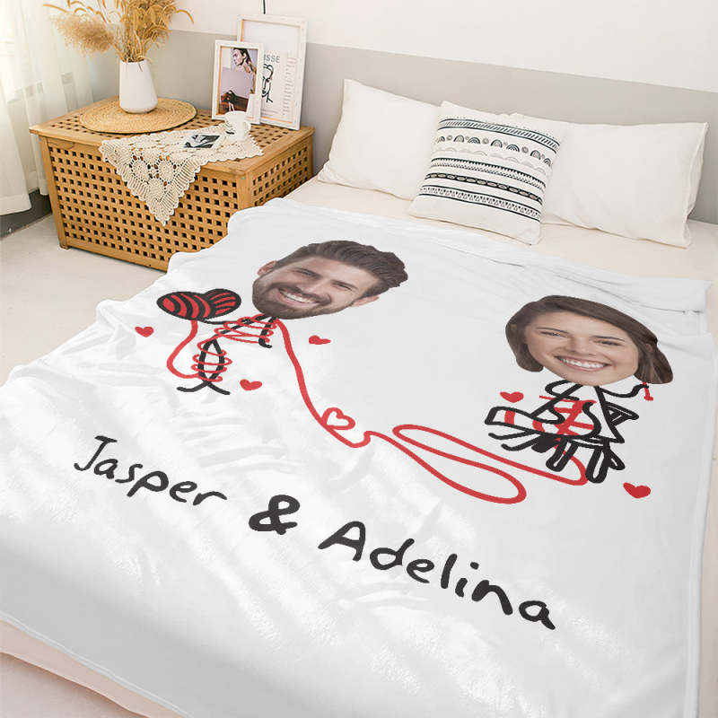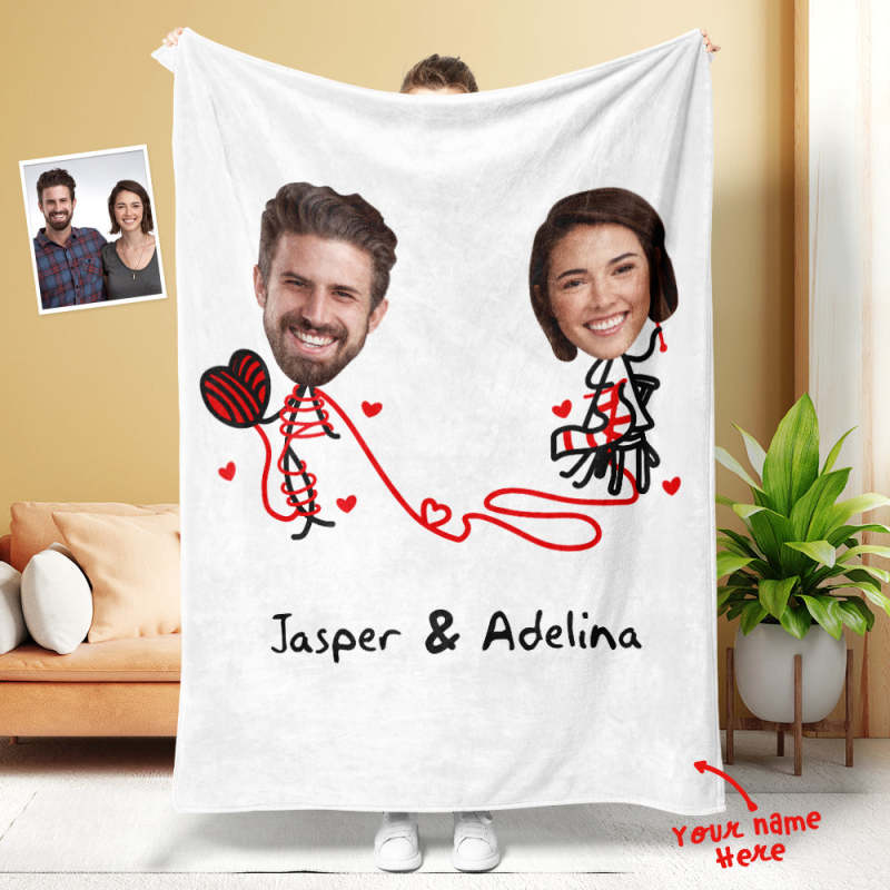 Custom Matchmaker Face Blanket Knitting Sweater Personalized Couple Photo and Text Blanket Valentine's Day Gift
