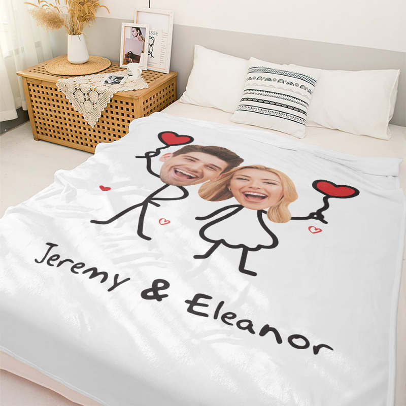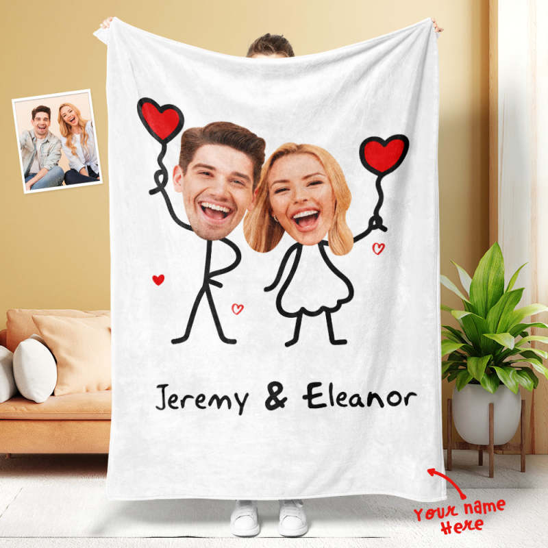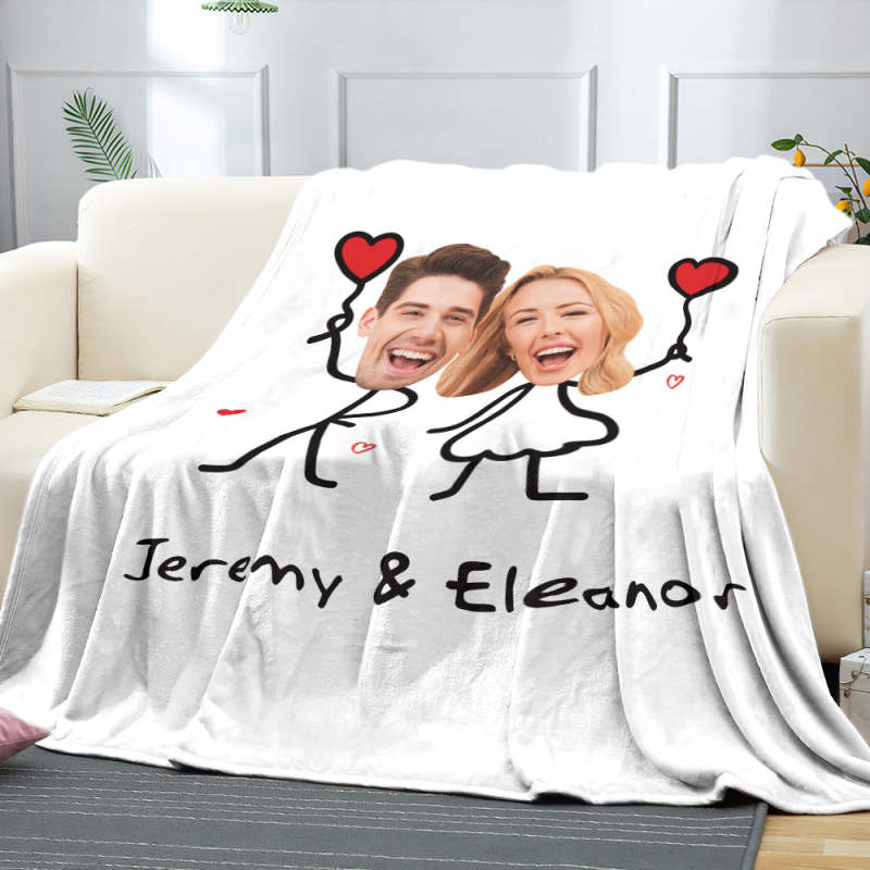 Custom Matchmaker Face Blanket Love Balloon Personalized Couple Photo and Text Blanket Valentine's Day Gift