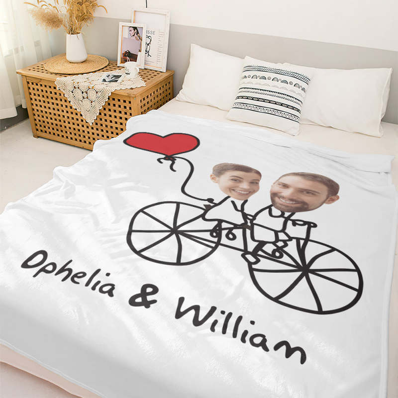 Custom Matchmaker Face Blanket Love Bike Personalized Couple Photo and Text Blanket Valentine's Day Gift