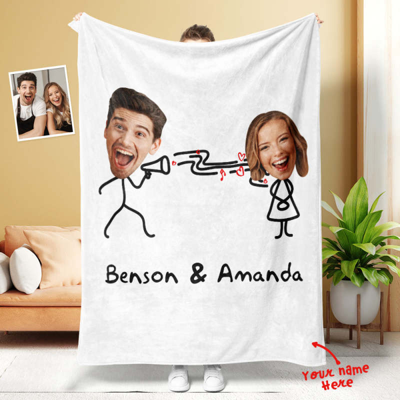 Custom Matchmaker Face Pillow Blanket Personalized Couple Photo and Text Blanket Valentine's Day Gift