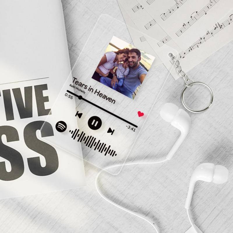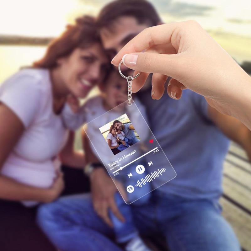 Custom Music Code Glass Music Keychain Photo Keyring Family Gift