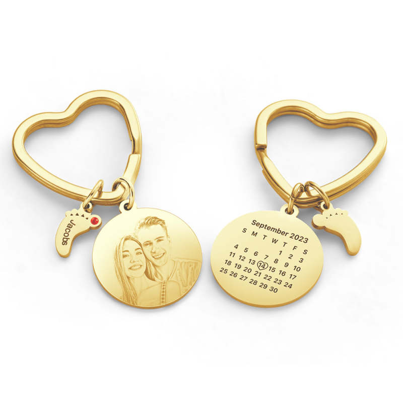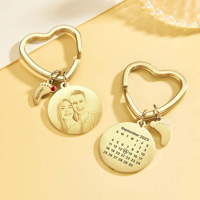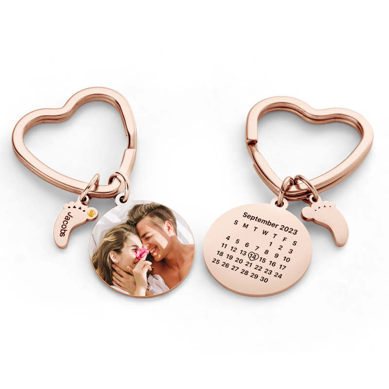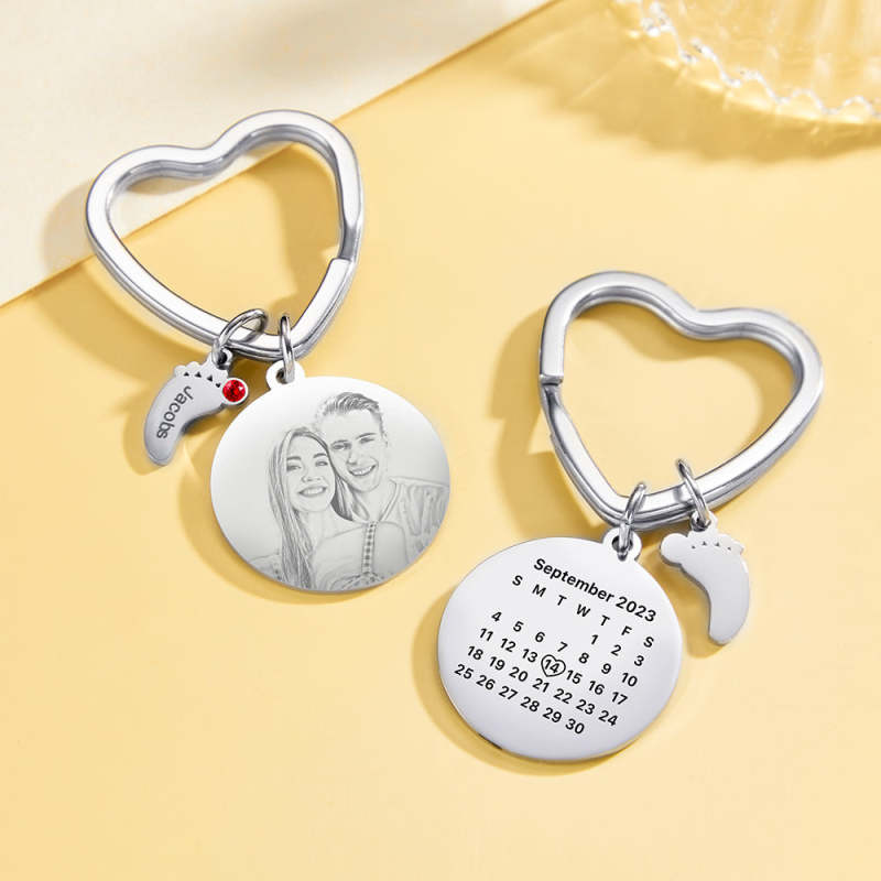 Custom Photo Calendar Keychain with Baby Feet Charm Personalized Calendar the Perfect Heartfelt Gift