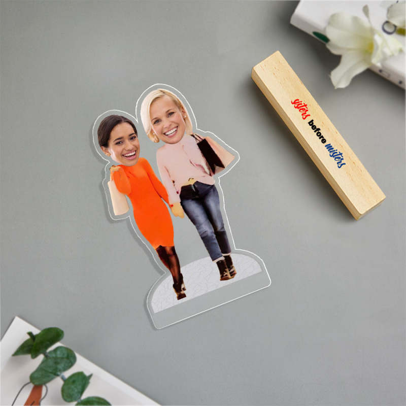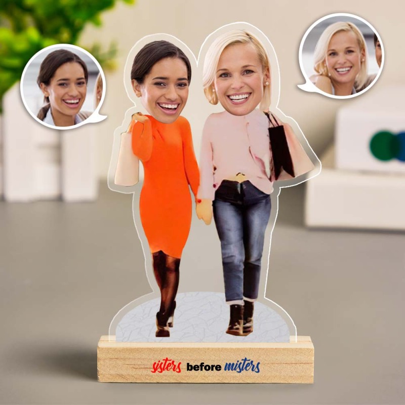 Custom Sister MiniMe Decor Personalized Best Friend Caricature with Wooden Stand Gift for Friends