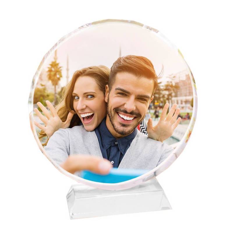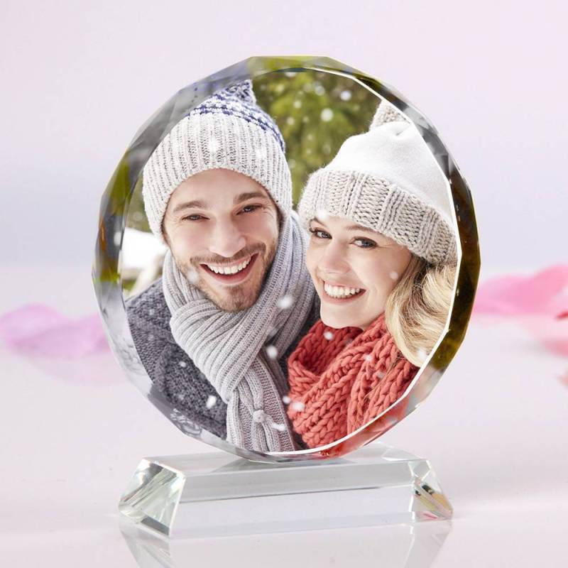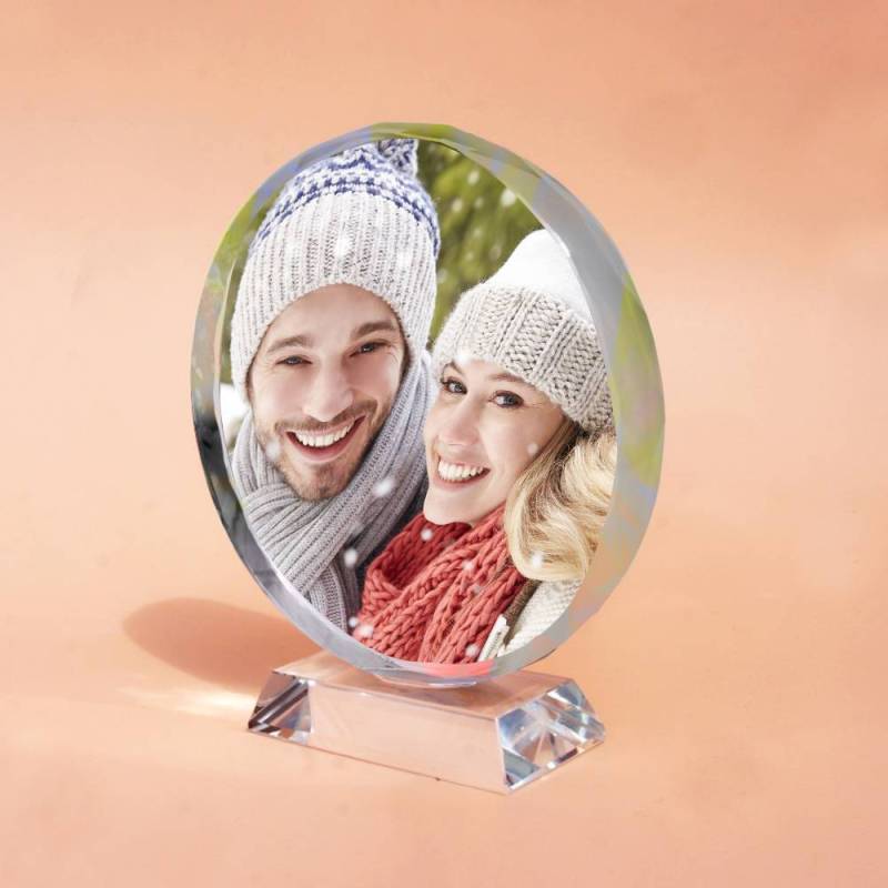 Personalized Crystal Photo Frame Round Keepsake Gift
