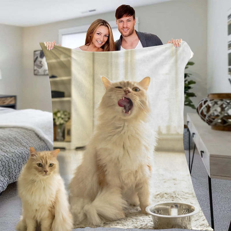 Personalized Cute Pets Cats Photo Fleece Blanket