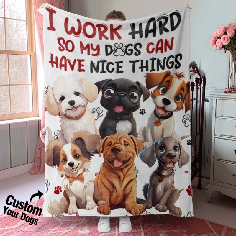 Personalized I Work Hard So My Dog Can Have Nice Things Blanket Gift For Dog Lovers