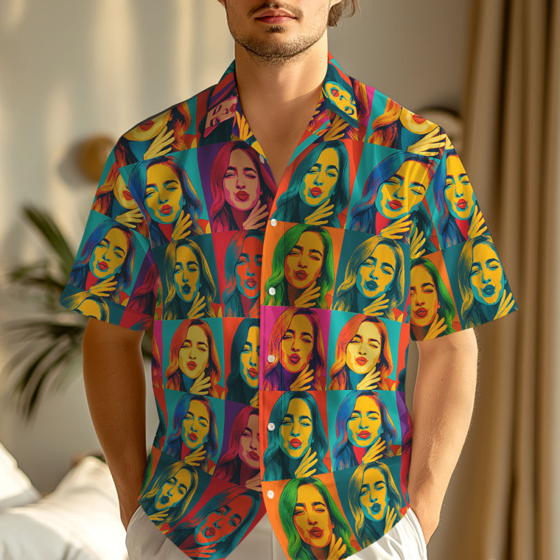 Pop Art Custom Face Hawaiian Shirt Bold Colorful Pattern Fun Personalized Gift