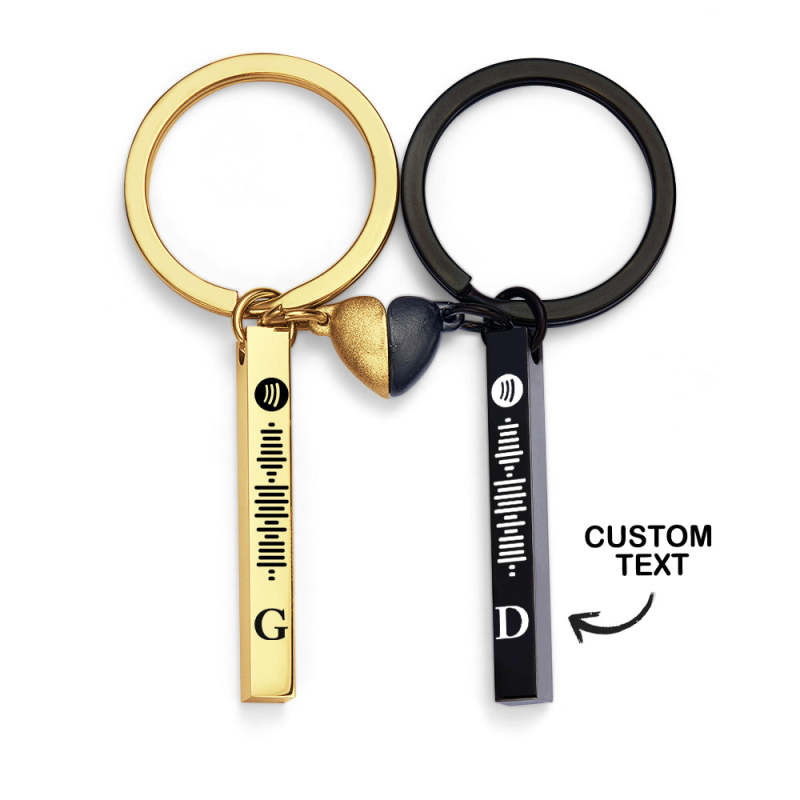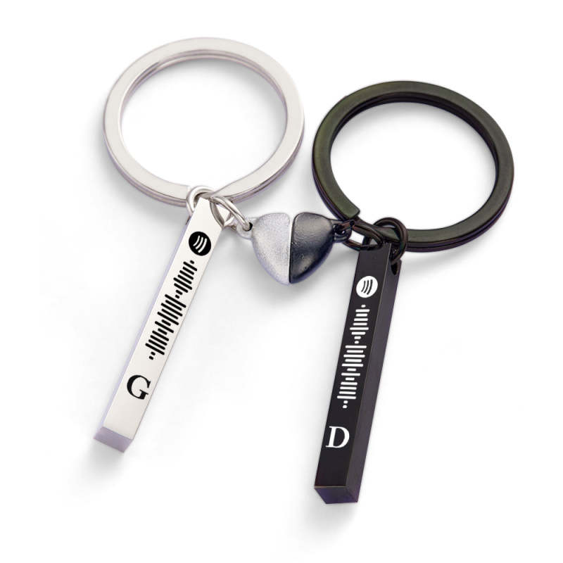 Set Magnet Heart Cute Custom Initial Keychain Spotify Music Keychain for Couple