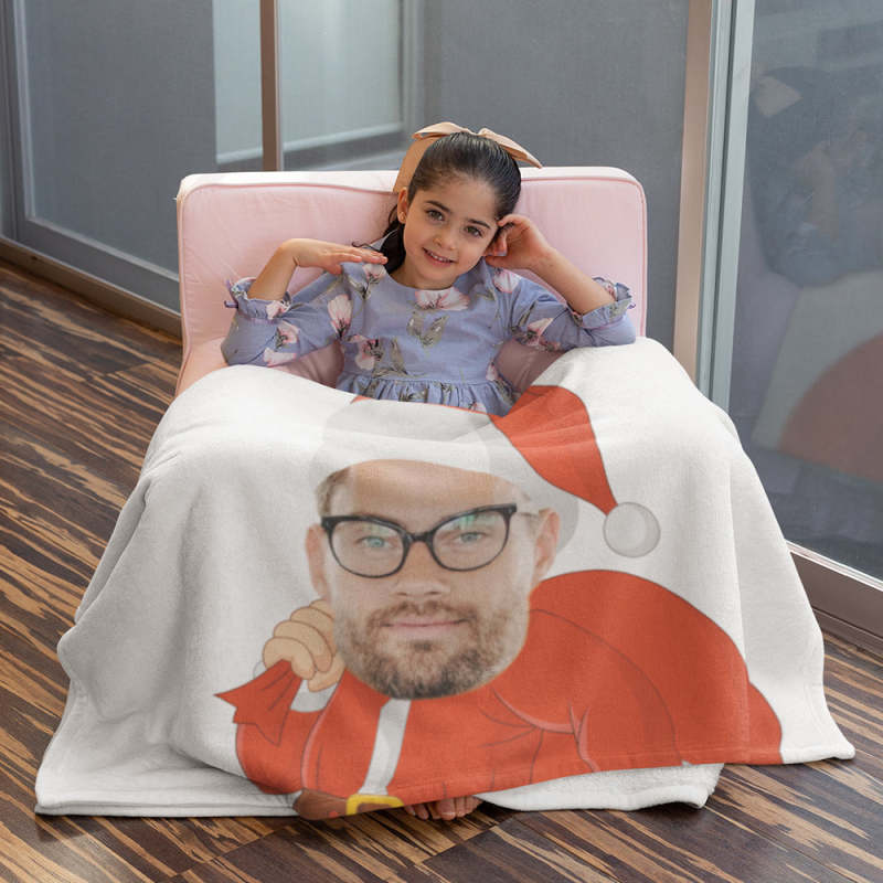 Unique Christmas Blanket Gifts Photo Blanket Face Blanket Custom Blanket Personalized Santa Claus in A Red Bag with Gifts